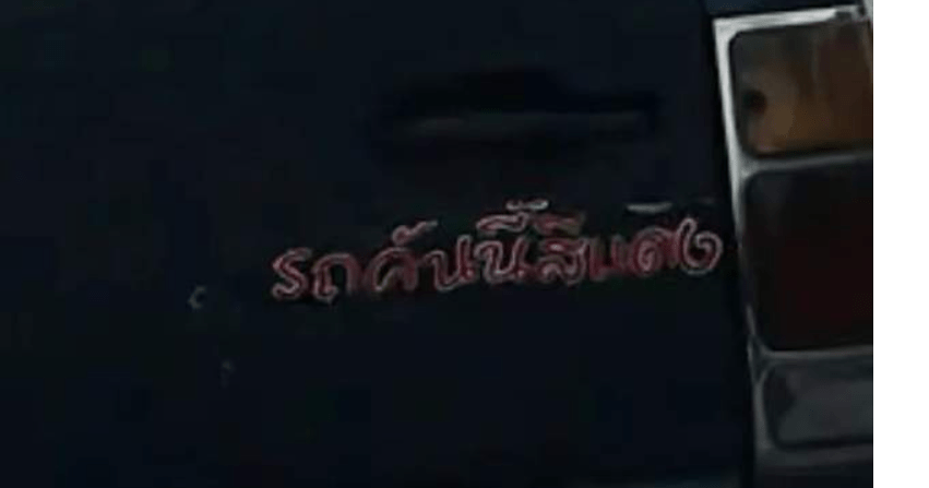 泰國受到緬甸星相宗教影響,對幸運顏色很看重,所以就算車子是黑色的,也要貼上自己的幸運顏色語句。這里暗示的是信仰,當你相信你的車子是紅色的才會幸運,暗喻電影里沒有信仰注定的悲劇。
