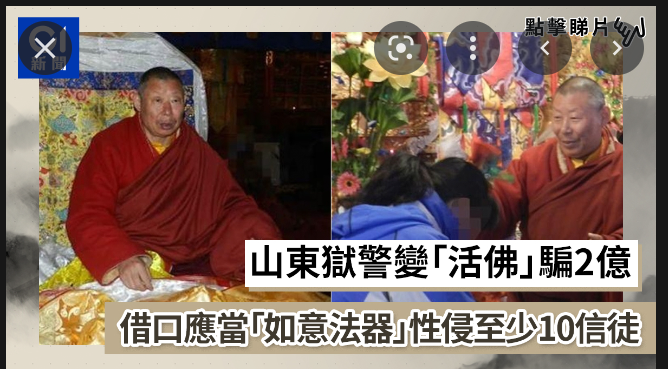 在網上可以找到極多佛教信眾被藏密或者南傳上師性侵的個案。在中港台以及東南亞等地都輕易找到大量所謂上師透過「灌頂」儀式和女信眾進行性交,以及從信眾當中收取大量金錢。在極度關注「上師的秘密傳承」的宗教是非常容易受害,因為信眾相信上師有能力可以改變自己的命運為自己提供「加持」。而當我訪問過香港坊間一些所謂「修藏密」的人,他們會為這些受害者「跟錯上師」的情況總結出幾種原因: